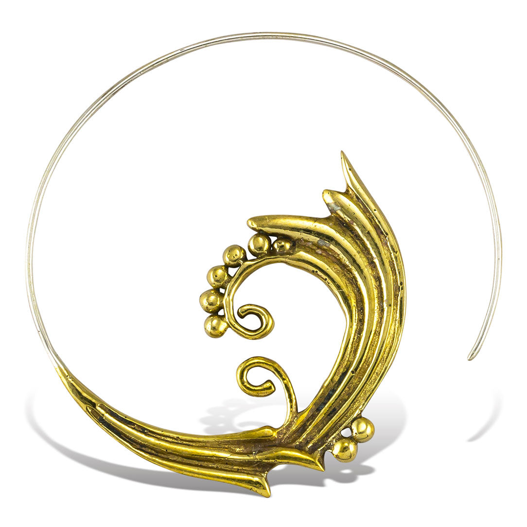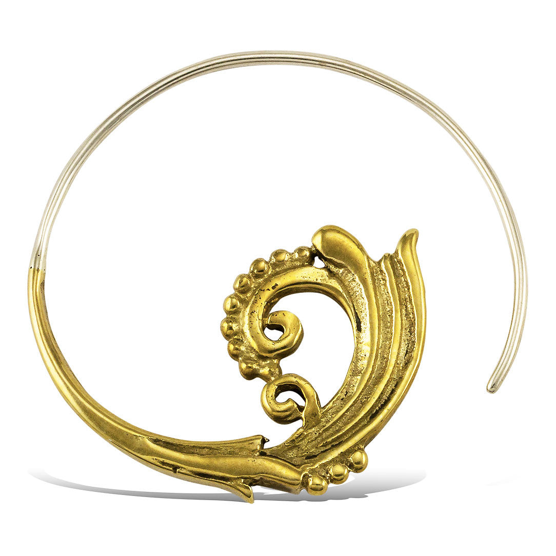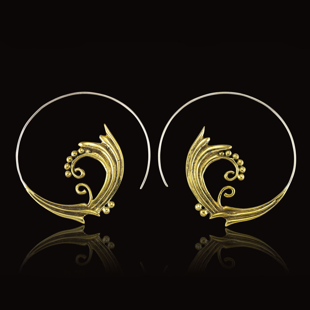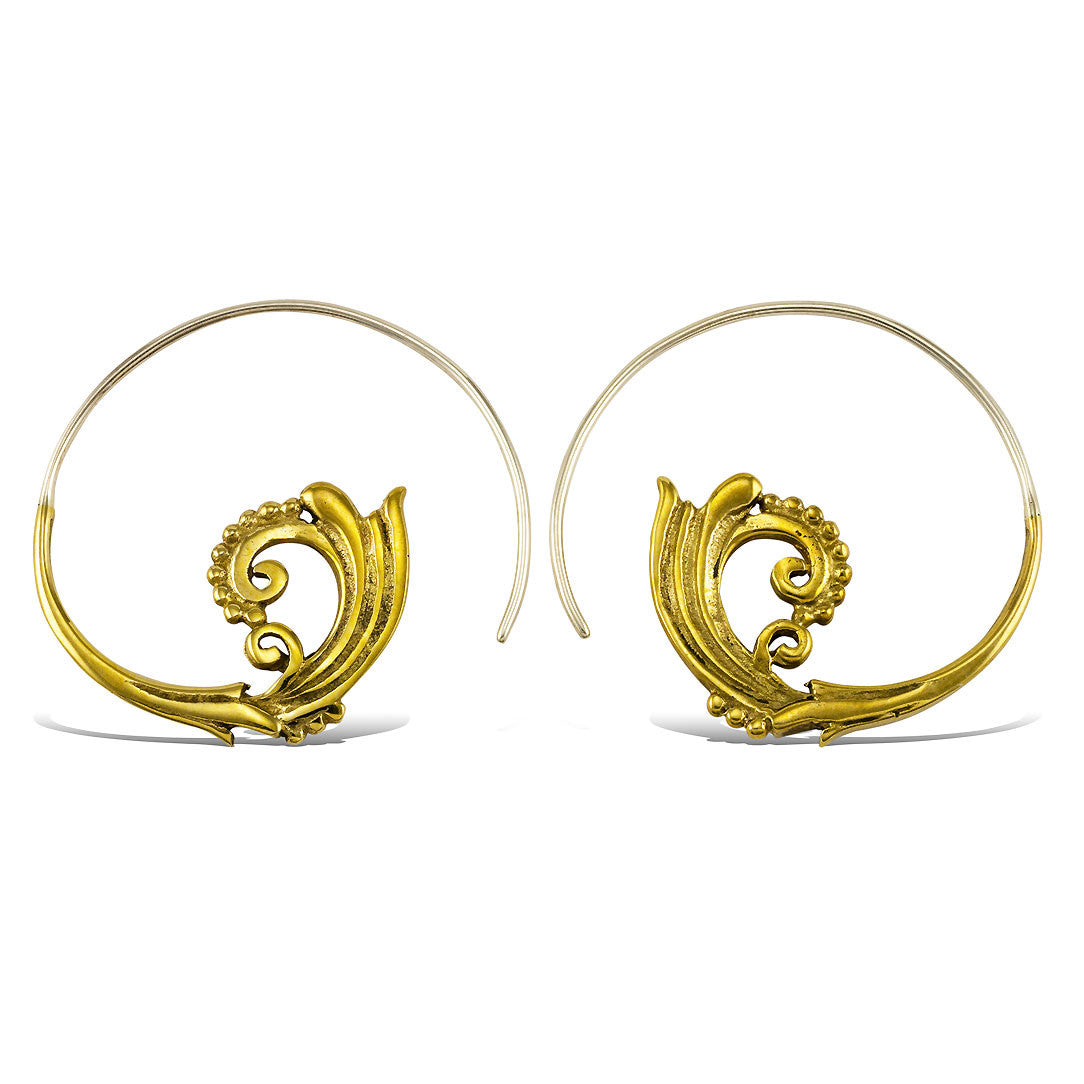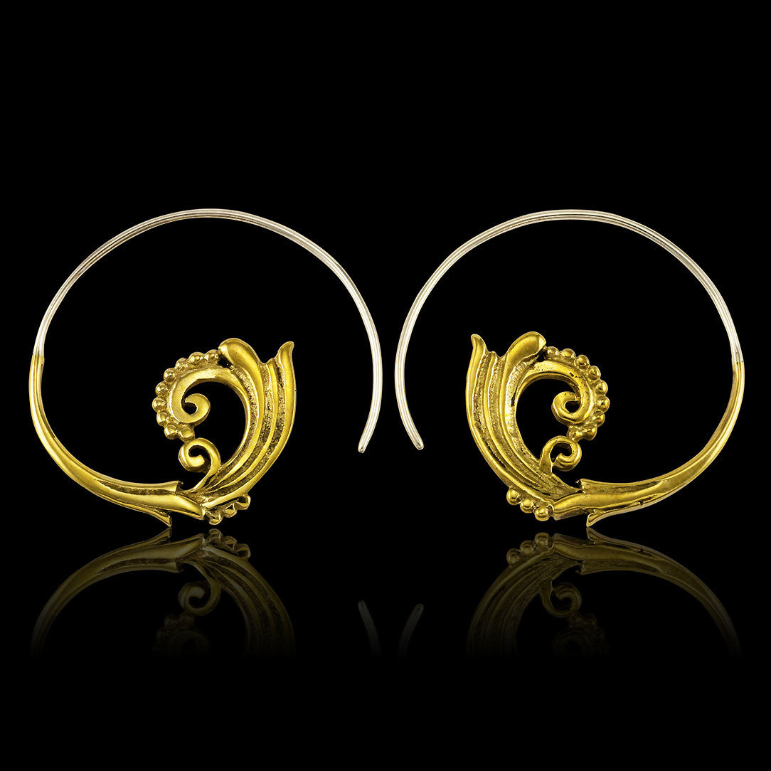 These handmade brass earrings are shaped into designs that are inspired by nature and Hindu culture. The 18 gauge sterling silver posts fit standard sized pierced ears.