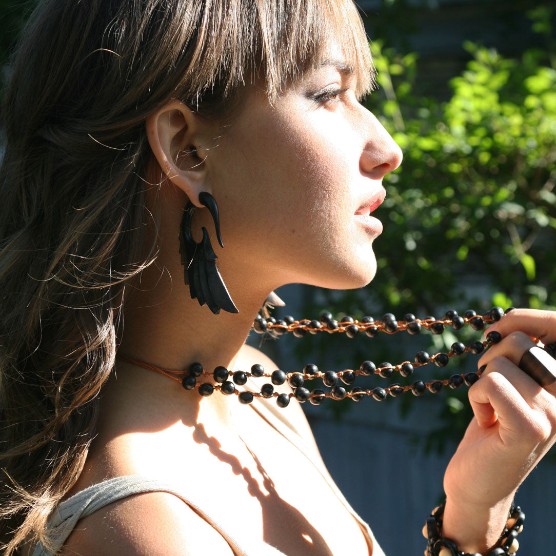 Due to the natural characteristics of the tropical hardwoods used to carve these earrings, some variations in color may occur. The 19ga surgical steel post is 100% hypoallergenic.