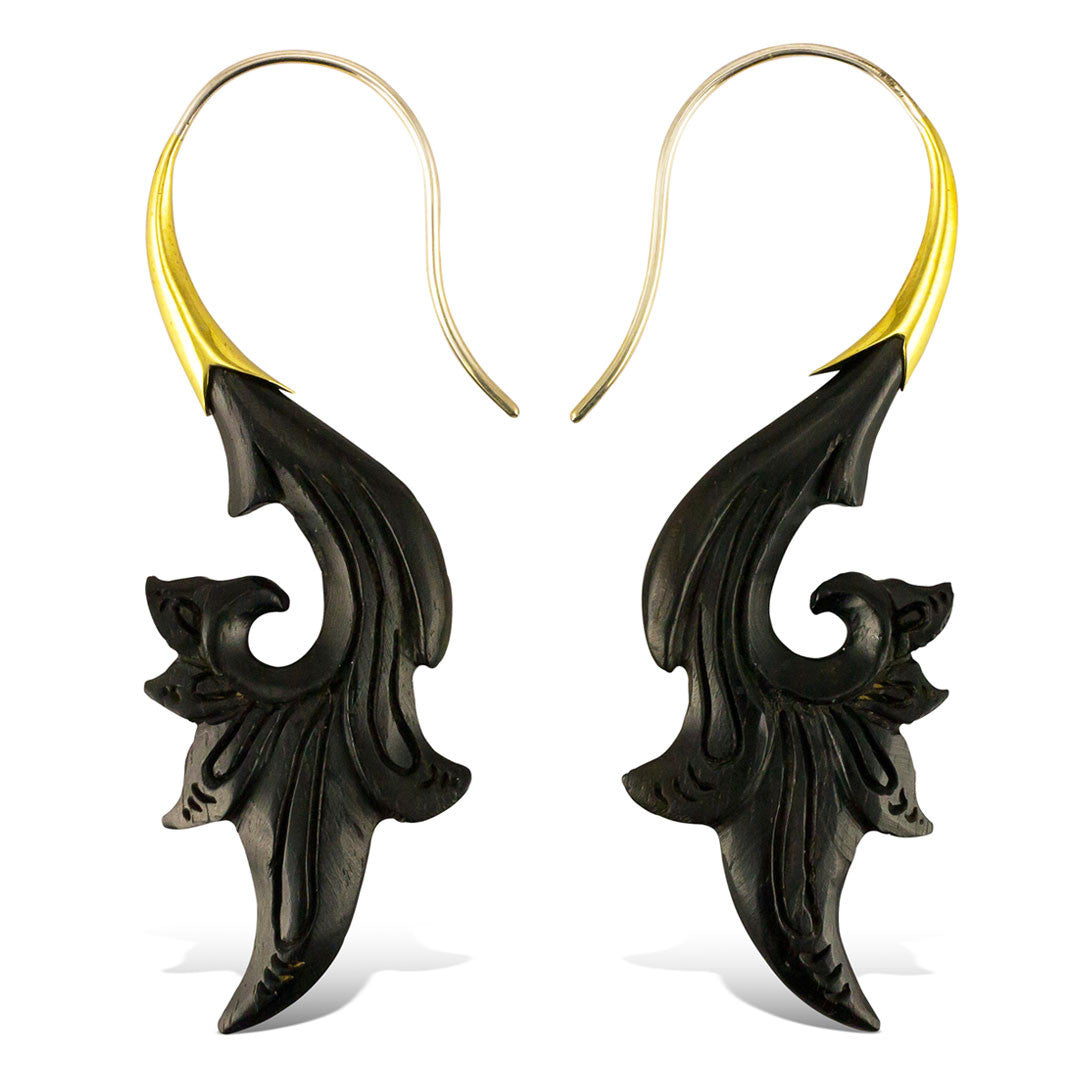 Inlaid in brass with a sterling silver post these earrings are hand carved from tropical hardwoods. Due to the natural characteristics of the wood used to carve these earrings, some variations in color may occur.  The 18ga sterling silver posts fit standard sized pierced ears and will come with a pair of earring backings.