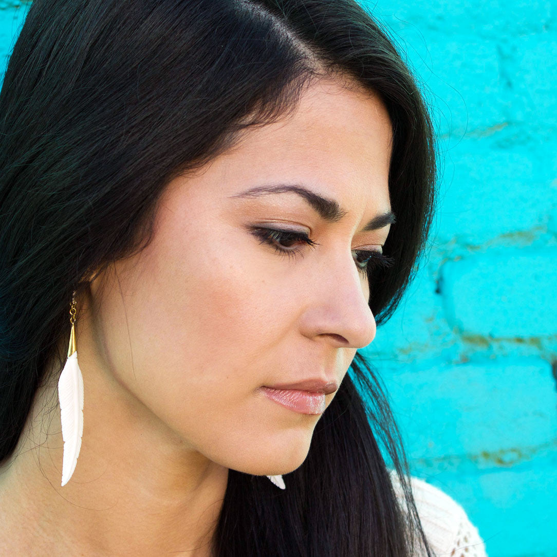 Inlaid in brass with a sterling silver post these earrings are hand carved from bone. The salvaged bone used to hand-carve these earrings comes from a domesticated water buffalo used for cultivation and food. To minimize waste, they are respectfully utilized for this form of art and income. The white colored bone has a vibrant polished shine, is light in weight and very durable. Due to the natural characteristics of the material slight variations in color may occur. The 18ga sterling silver posts fit standard sized pierced ears and will come with a pair of earring backings.