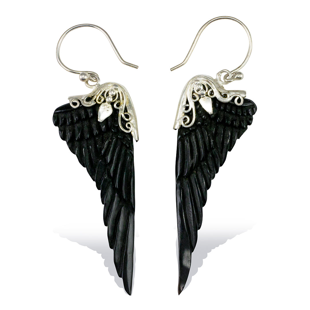Inlaid in silver plated metal, these earrings are hand carved from salvaged horn from a domesticated water buffalo used for cultivation and food. The 18 gauge sterling silver posts fit standard sized pierced ears and come with earring backings.