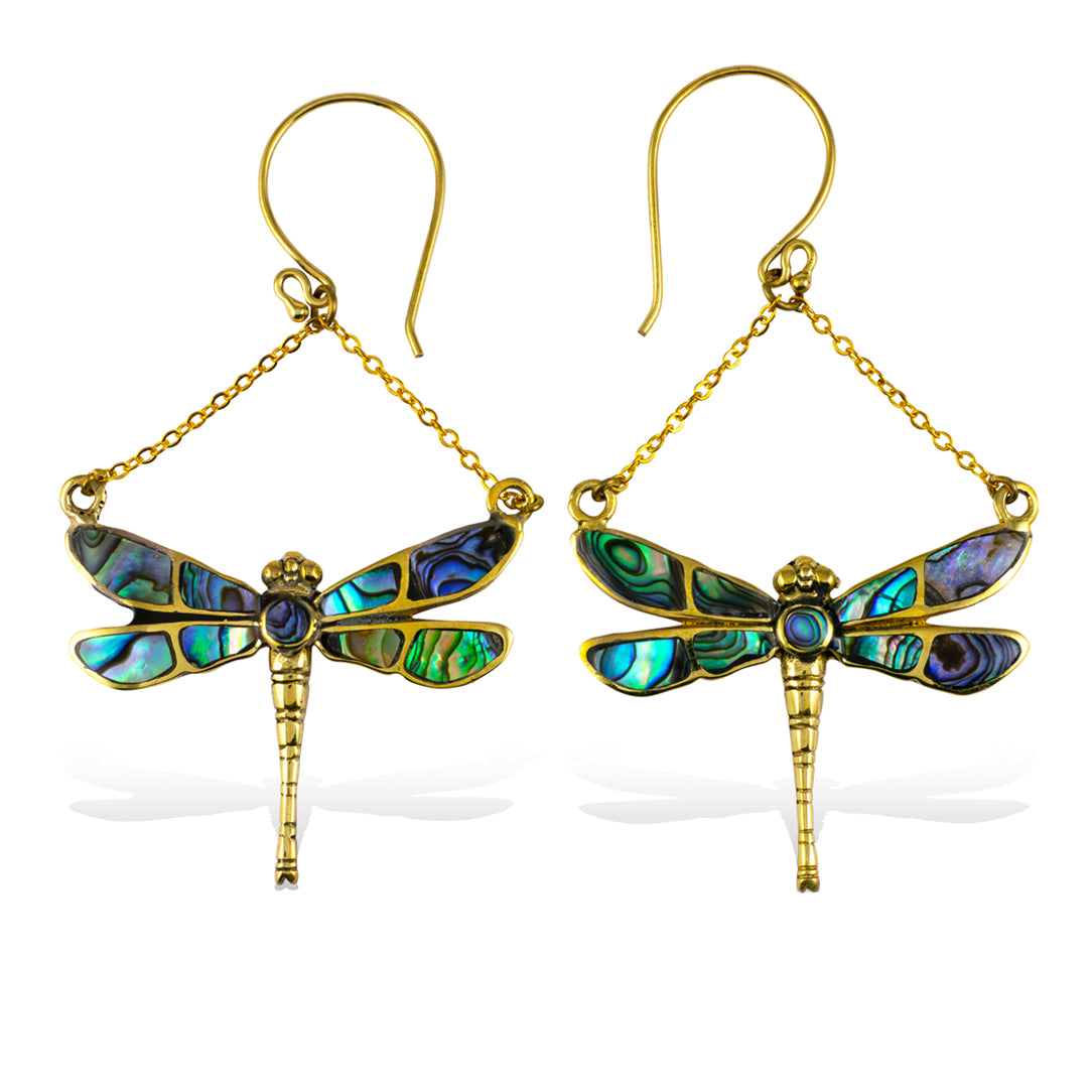Inlaid in brass, these earrings are hand carved from abalone shell originating from New Zealand. Due to the natural characteristics of the shell some variations in color may occur. The 18 gauge brass posts fit standard sized pierced ears.