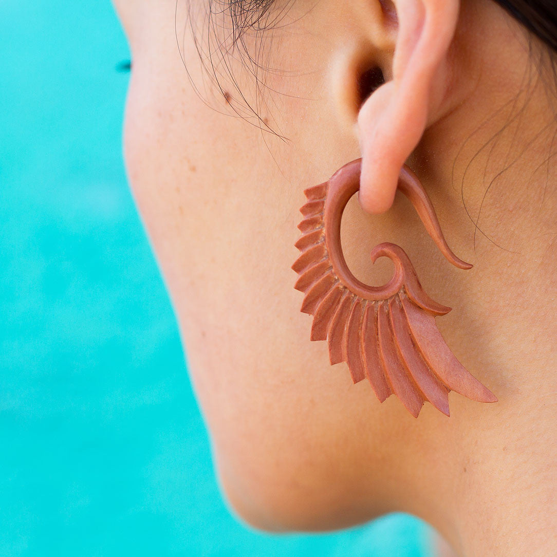 Due to the natural characteristics of the tropical hardwoods used to carve these earrings, some variations in color may occur. The 19ga surgical steel post is 100% hypoallergenic.