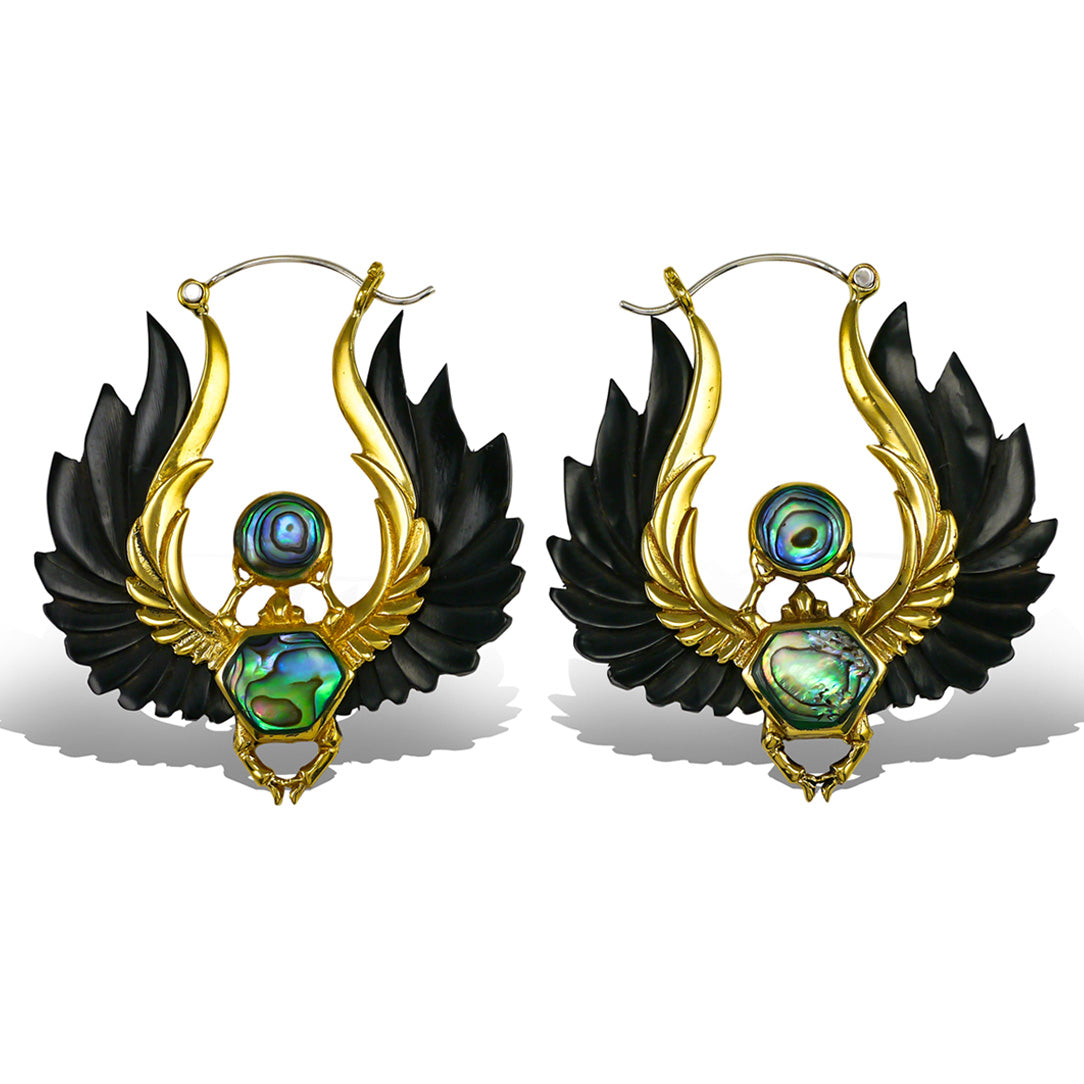 Inlaid in brass, these earrings are carved from salvaged horn from a domesticated water buffalo used for cultivation and food. The 18 gauge sterling silver posts fit standard sized pierced ears.