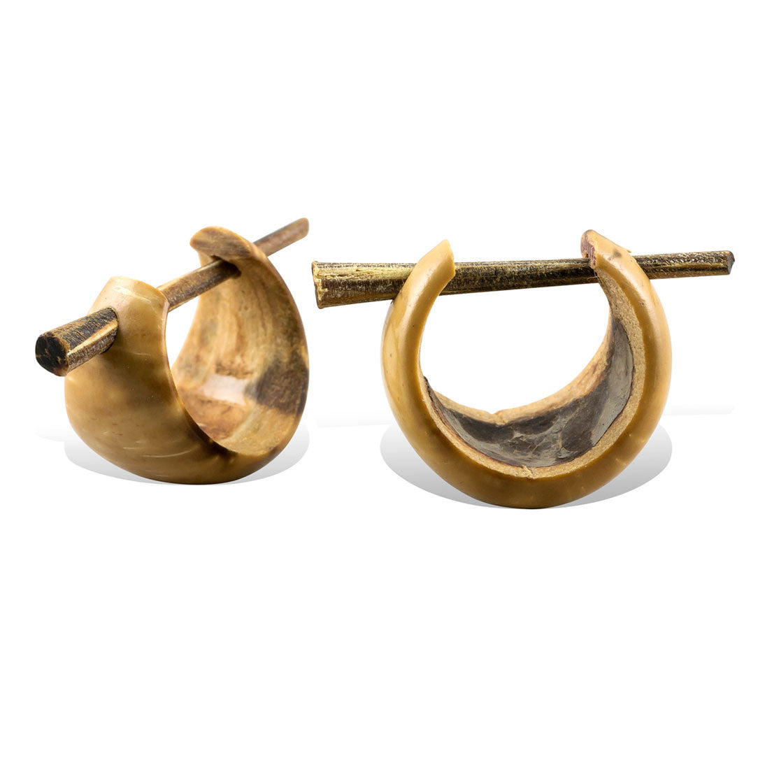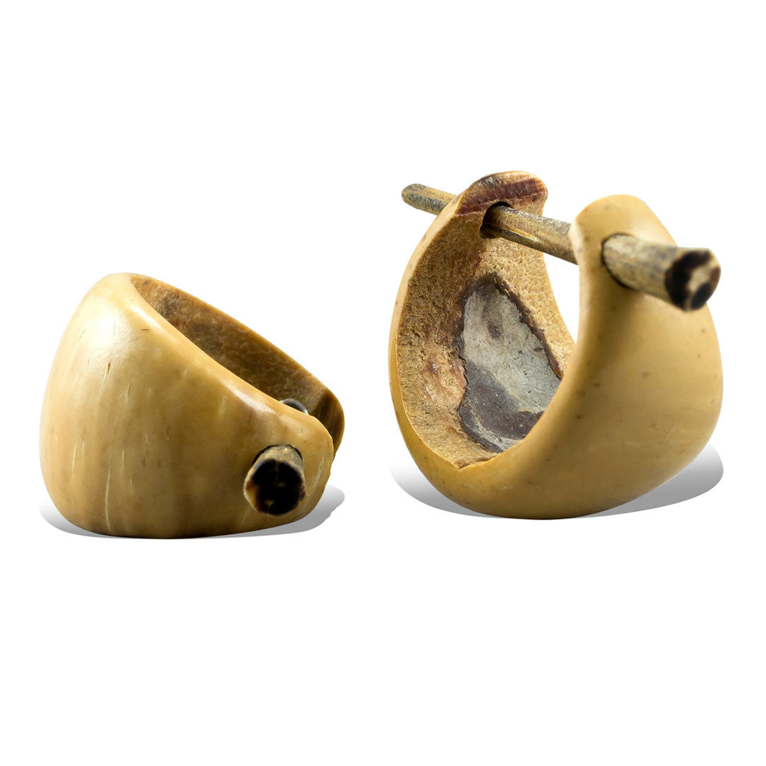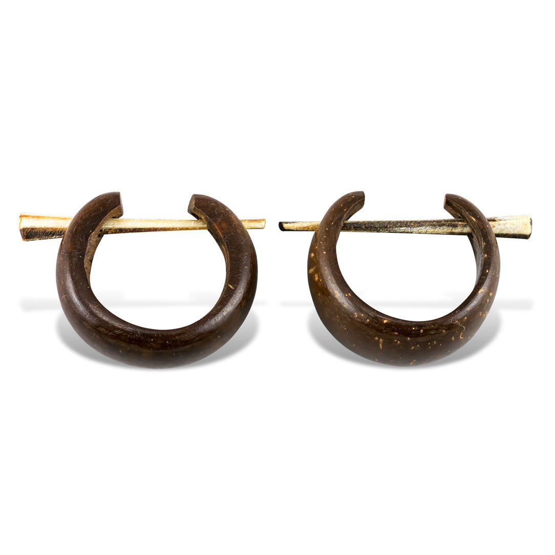 The coconuts and palm nuts used to hand-carve these earrings are acquired from local farmers in Central and South America. The various pigmentation on these coconut earrings are the natural color tones found on the coconut shell. What is not pressed for coconut oil is utilized for this form of art and income. The post fits a standard size piercing, rarely causes irritation, and is a great alternative for people who are sensitive to metallic earrings.