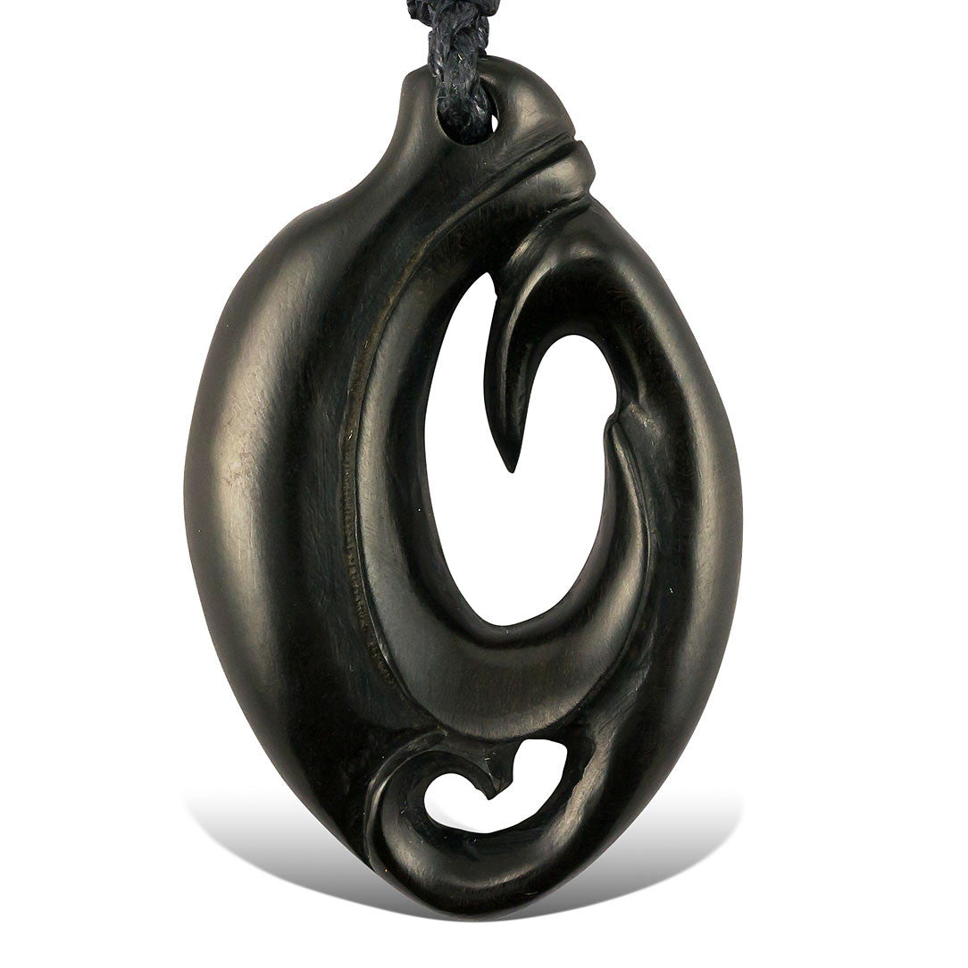 The salvaged horn used to carve these pendants is from a domesticated water buffalo used for cultivation and food. Slight variation in color may occur. Each design combines elements from Maori mythology to provide the carrier with guidance and protection along the journey.
