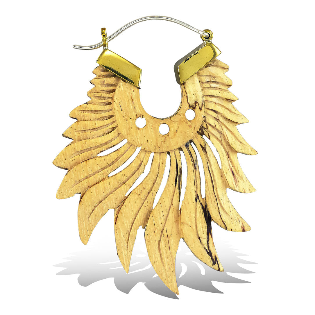 Inlaid in brass with a sterling silver post these earrings are hand carved from tropical hardwoods. Due to the natural characteristics of the wood used to carve these earrings, some variations in color may occur. The 18ga sterling silver posts fit standard sized pierced ears and will come with a pair of earring backings.