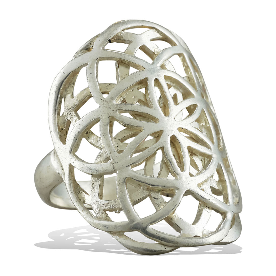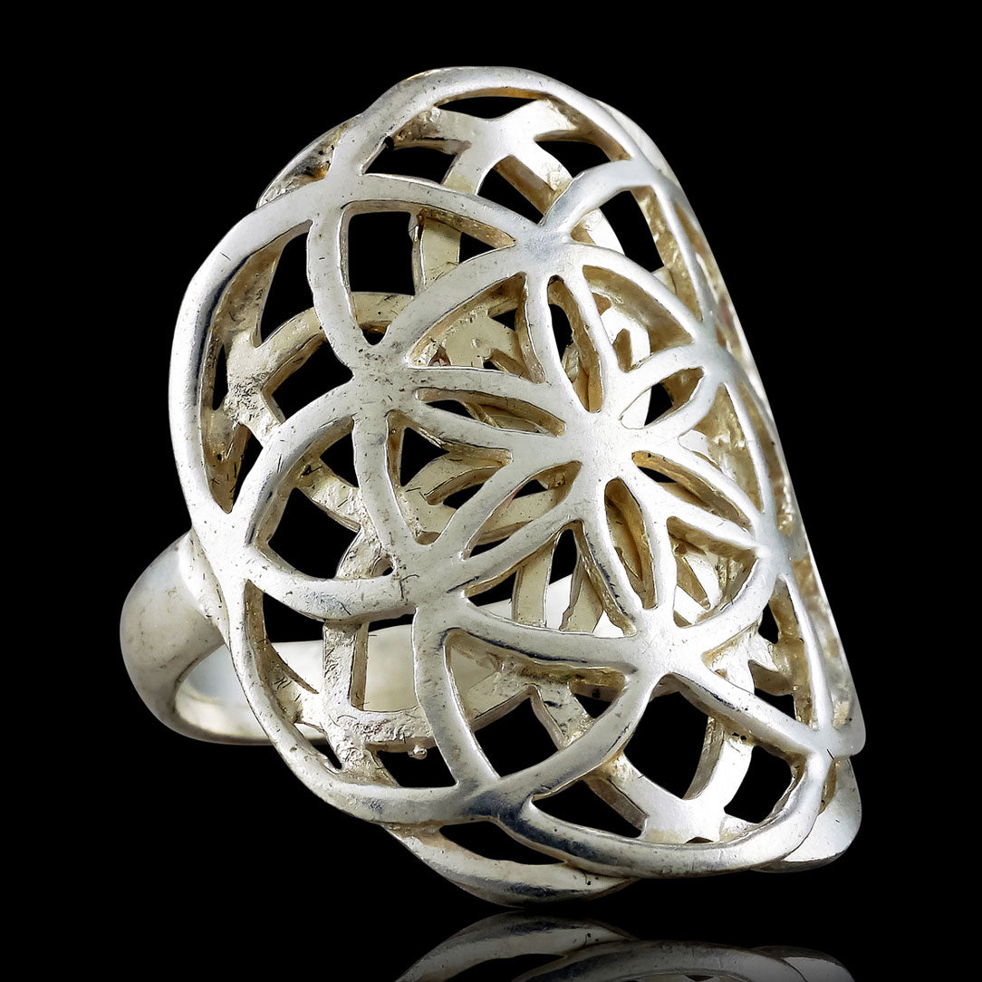 These hand crafted rings are silver plated over brass. They are shaped into designs that are inspired by nature and sacred geometry.