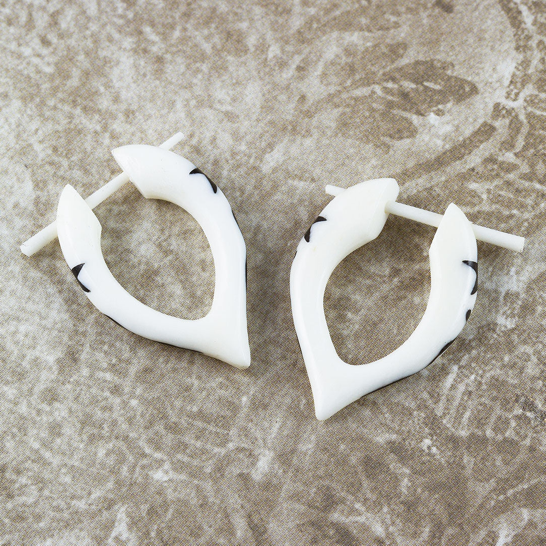The salvaged bone used for these earrings is from a domesticated water buffalo used for cultivation and food. The post fits a standard size piercing, rarely causes irritation, and is a great alternative for people who are sensitive to metallic earrings.
