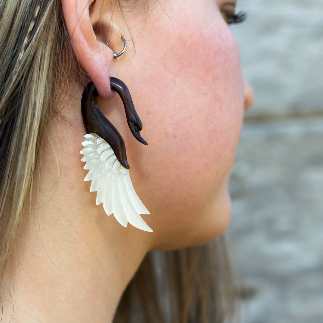 Due to the natural characteristics of the tropical hardwoods and the shell from New Zealand, some variations in color may occur. The 19 gauge surgical steel post is 100% hypoallergenic.